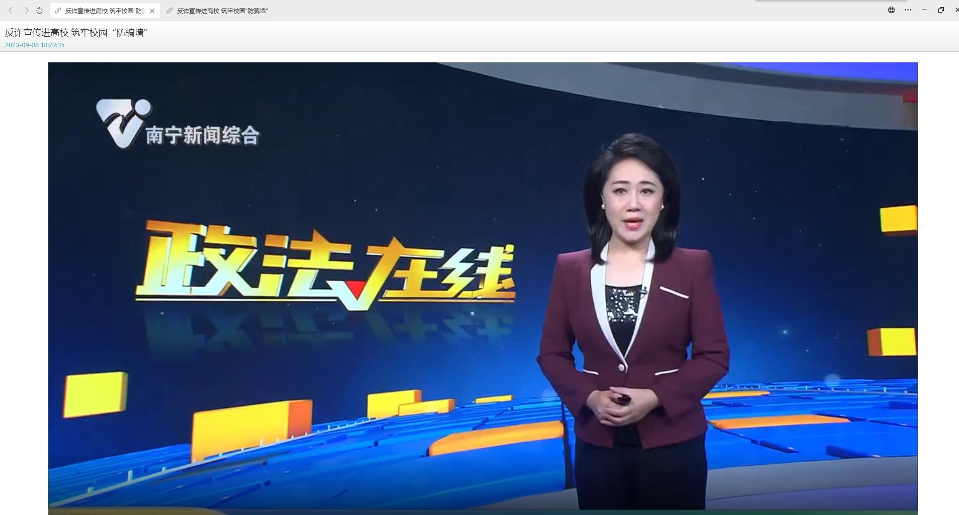 南宁市电视台报道我校反诈宣传进高校筑牢校园“防骗墙”活动。