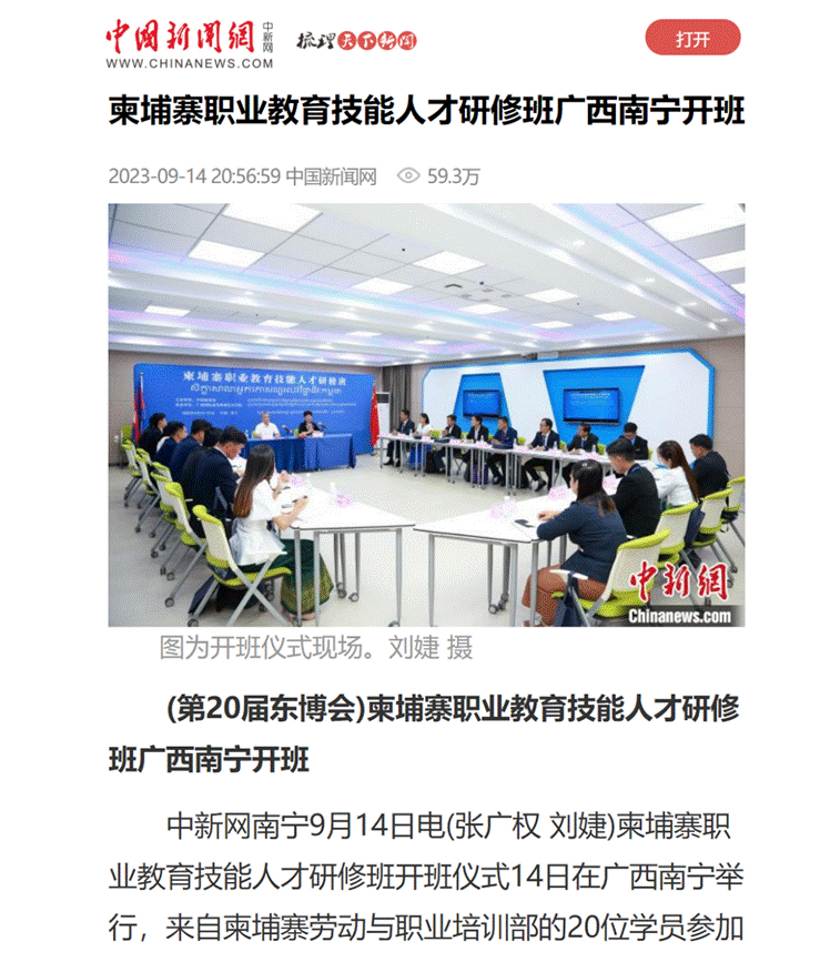 中国新闻网报道我校承办的柬埔寨职业教育技能人才研修班开班:中国新闻网链接:https://m.chinanews.com...