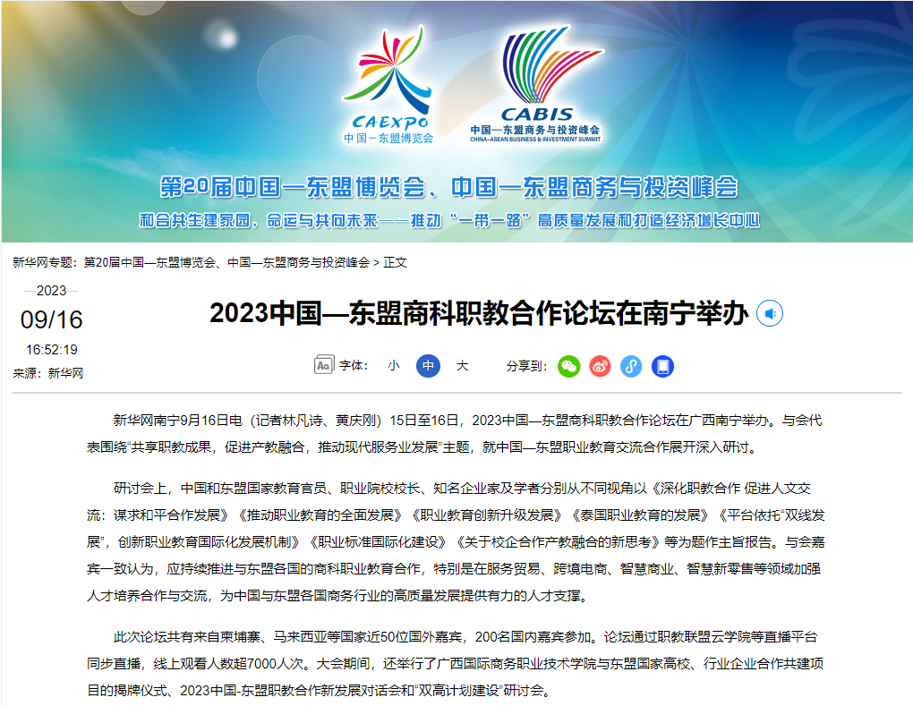 近日,我校承办的2023中国—东盟商科职教合作论坛、2023中国—东盟商科职教合作论坛暨广西职业院校“双...