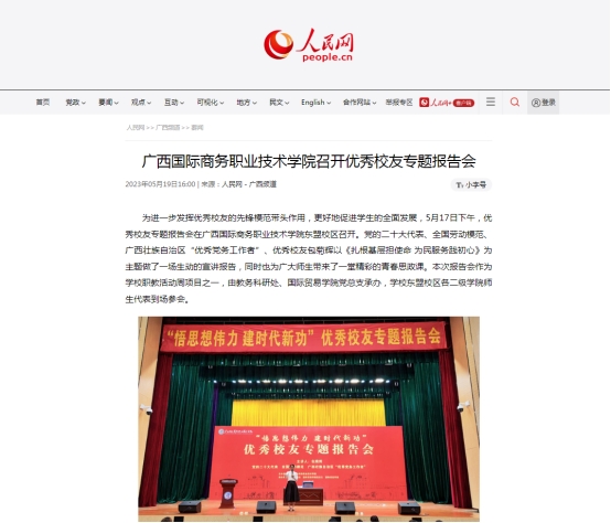 人民网、广西八桂职教网报道我校优秀校友回校作专题报告 人民网链接:http://gx.people.com.cn/n2...