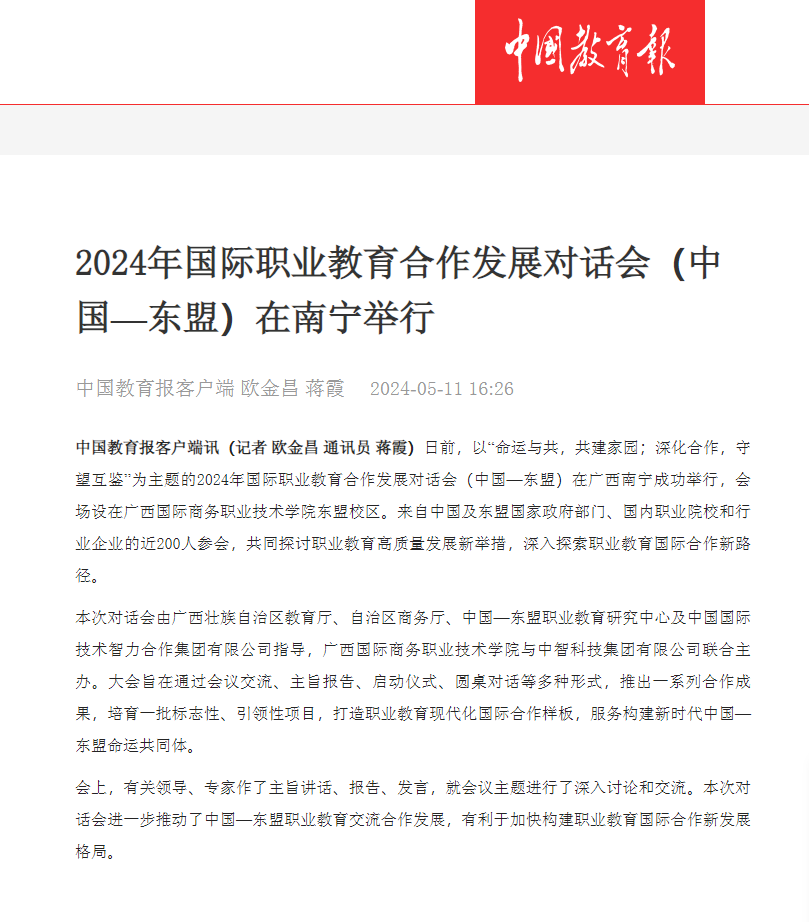 【广西台都市频道】2024年国际职业教育合作发展对话会(中国-东盟)举行